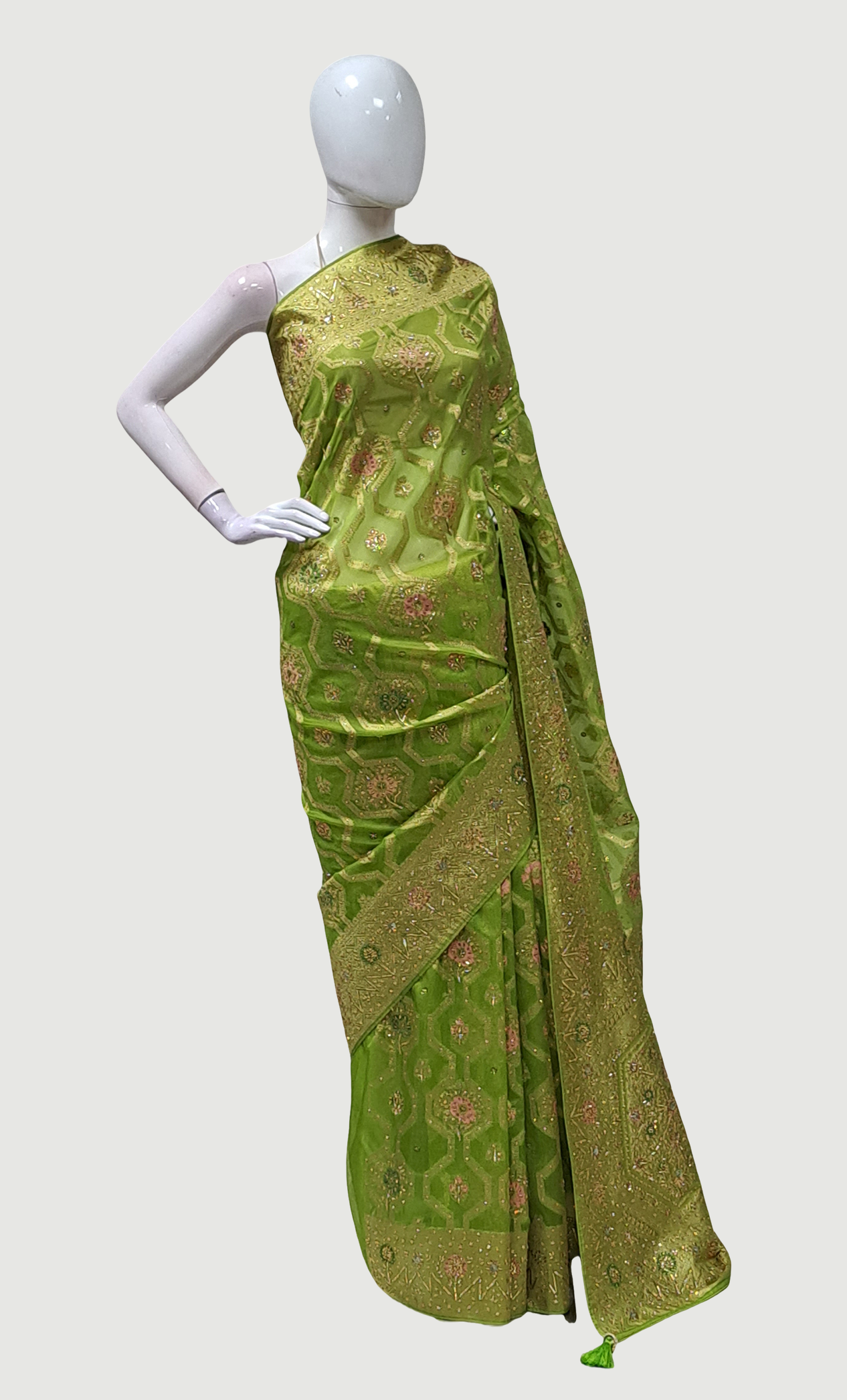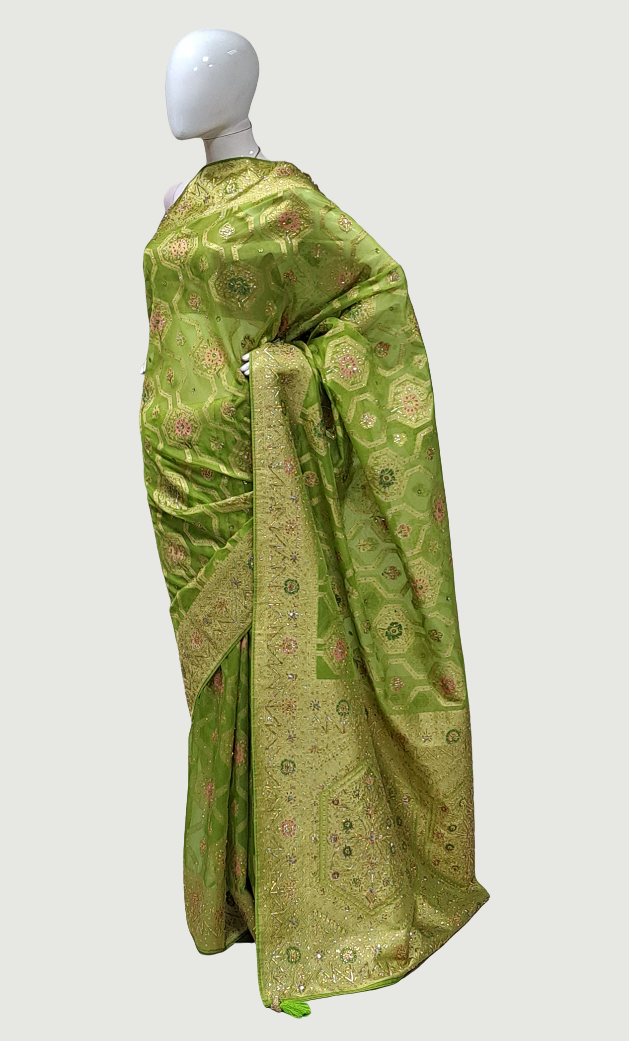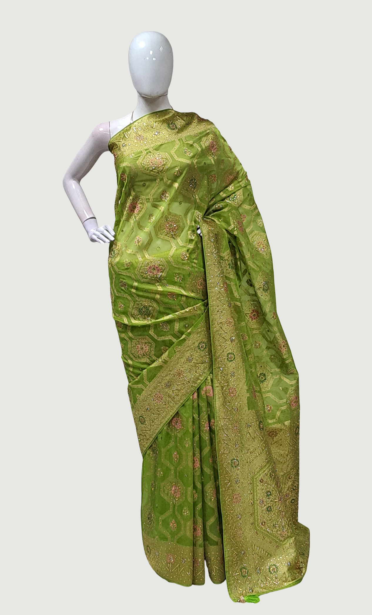 Deep Lime Green Embroidered Sari