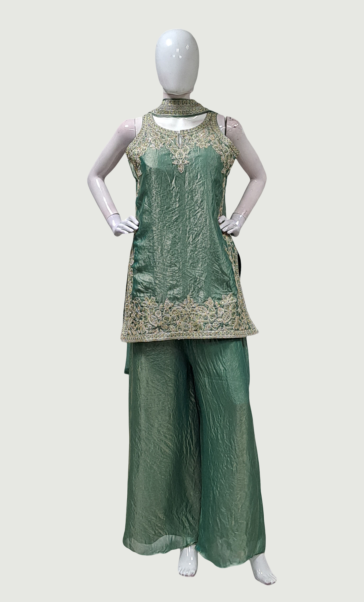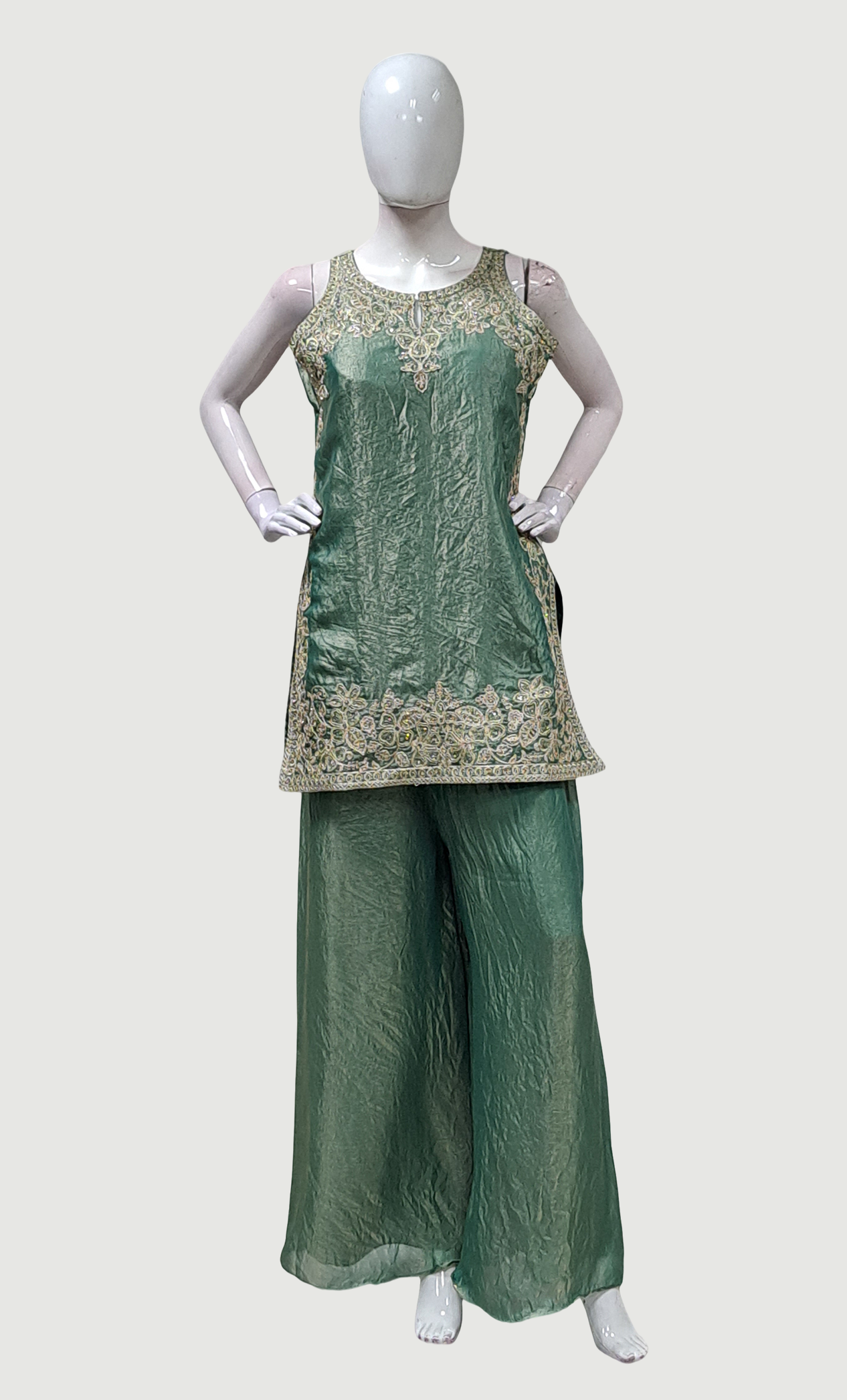 Green Embroidered Palazzo Set