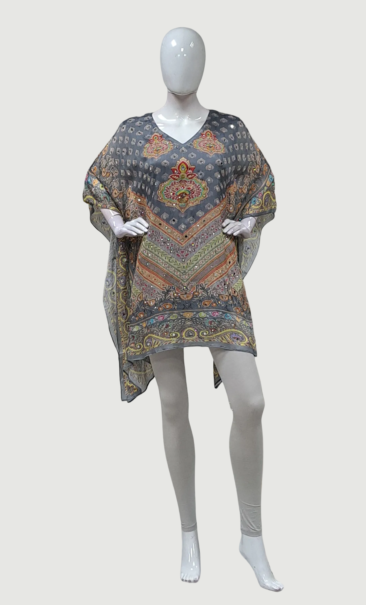Grey Embroidered Poncho Top