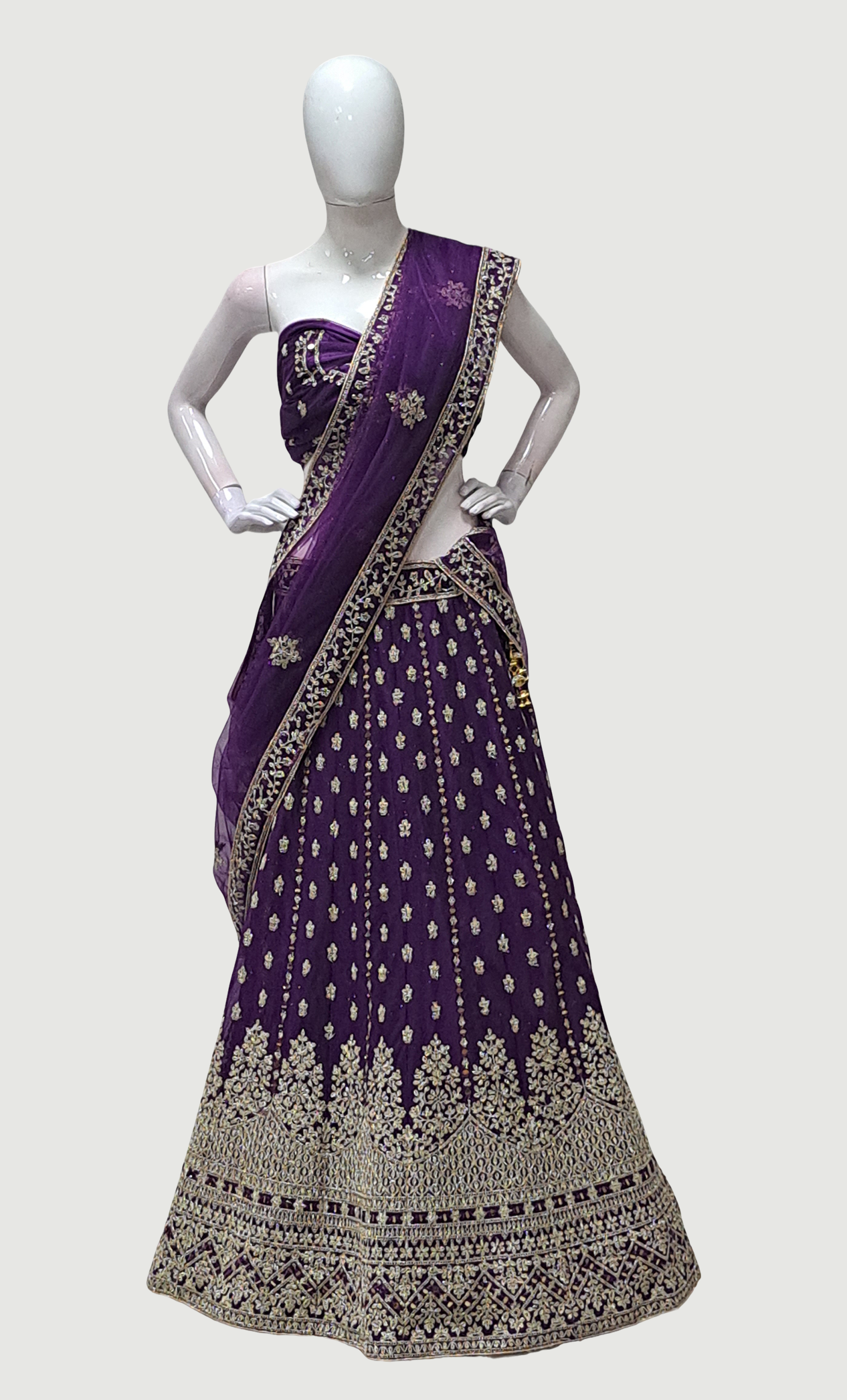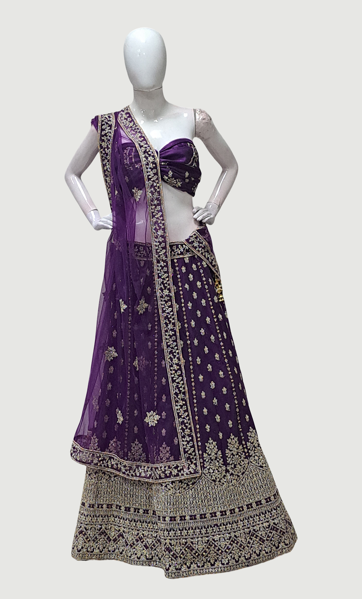 Purple Embroidered Lengha