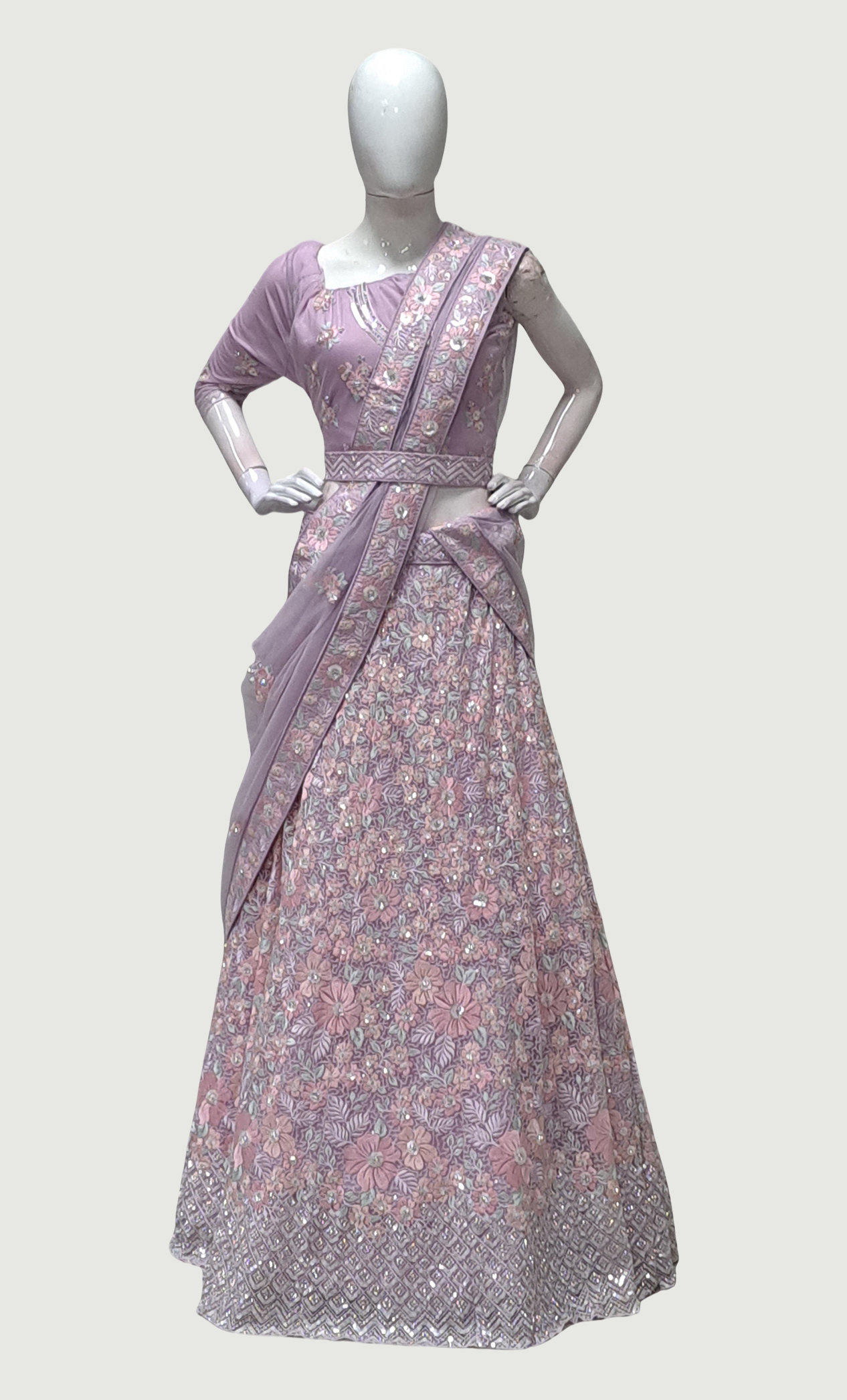 Purple Embroidered Lengha