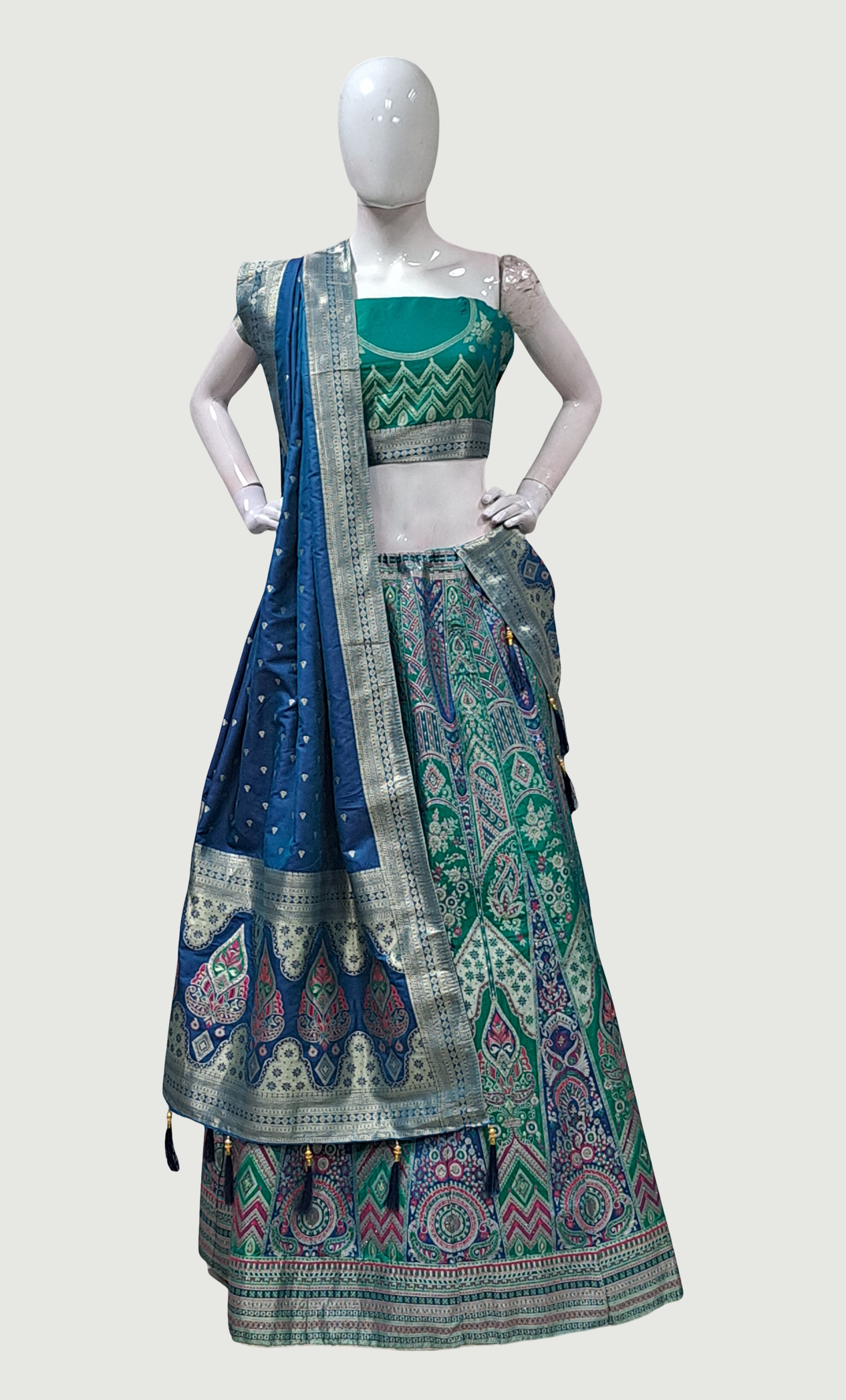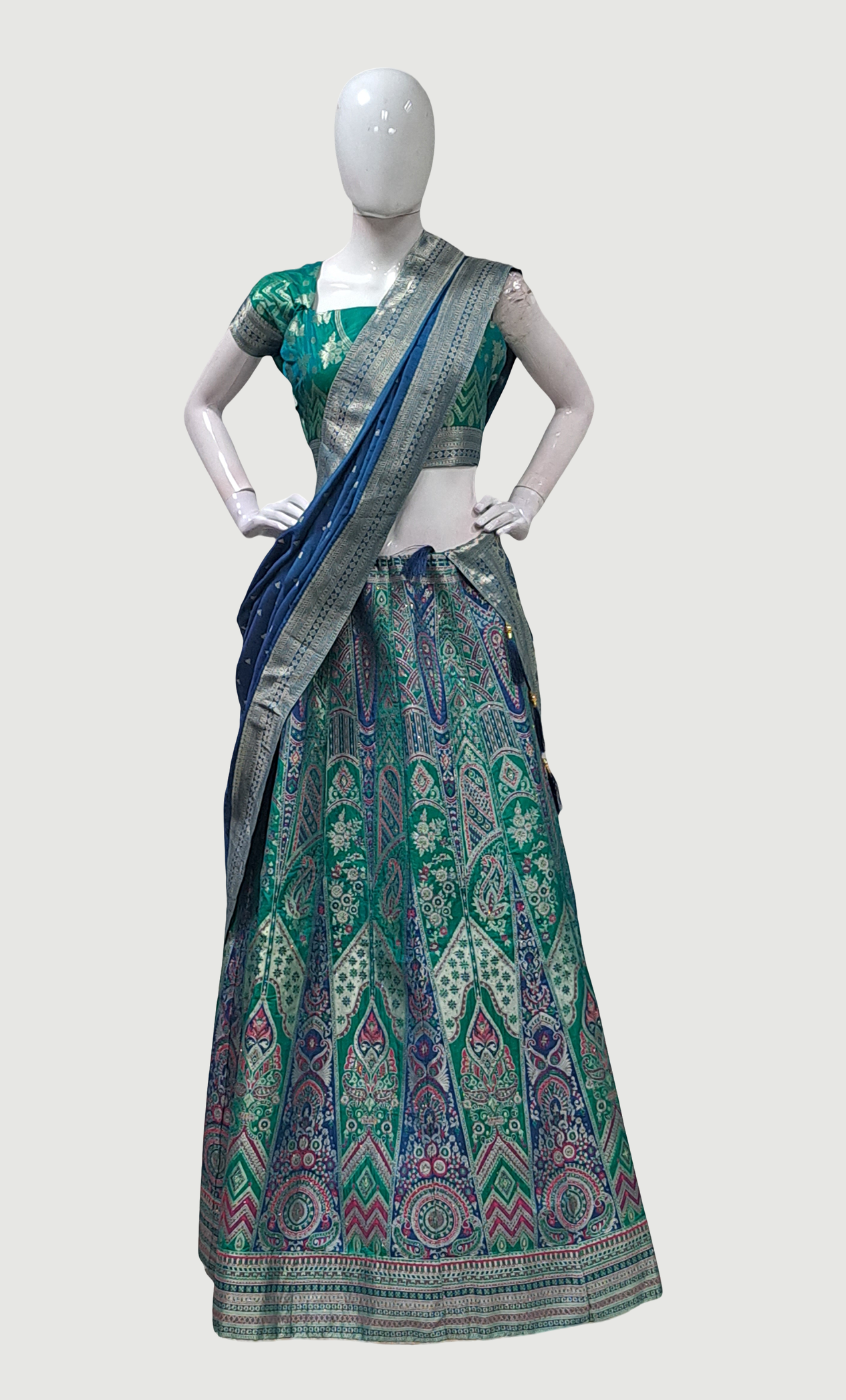 Teal Embroidered Lengha