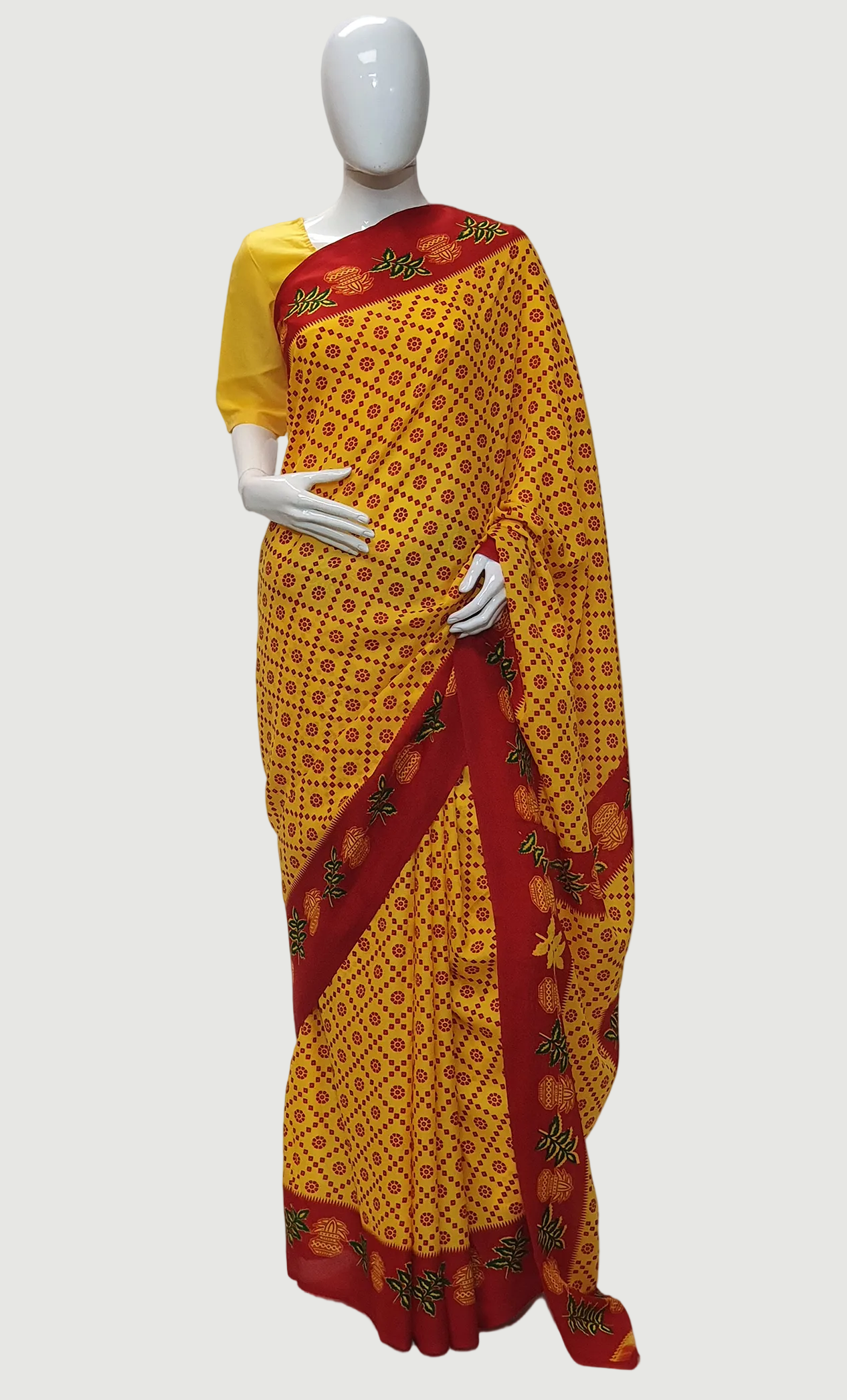 Yellow Printed Prayer Sari
