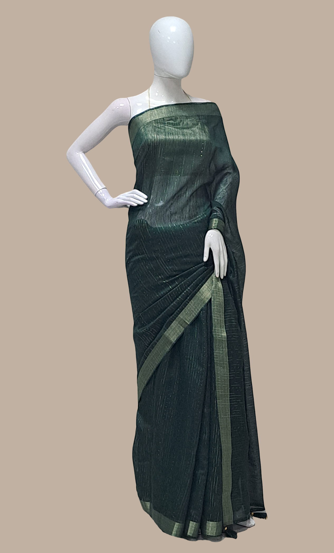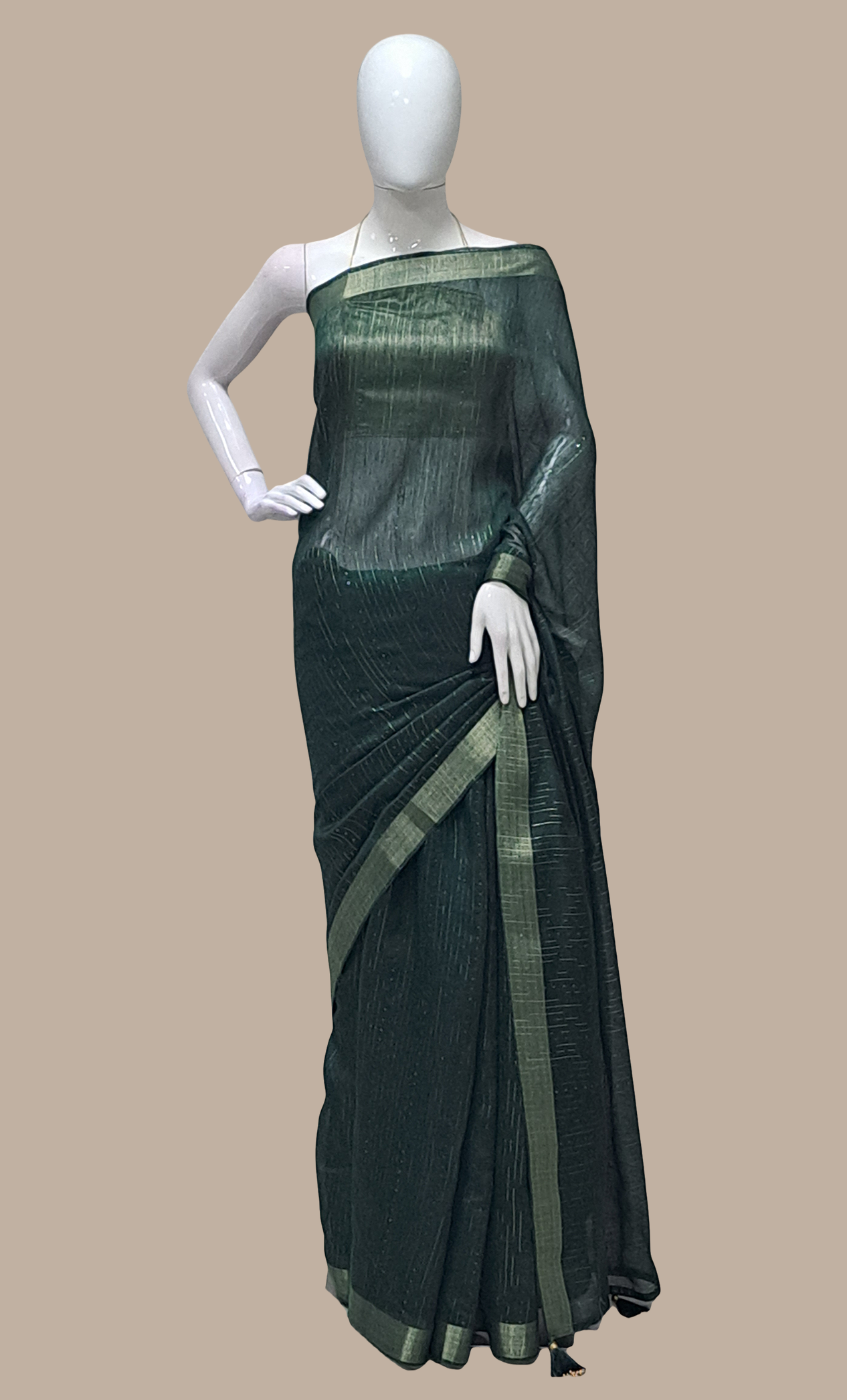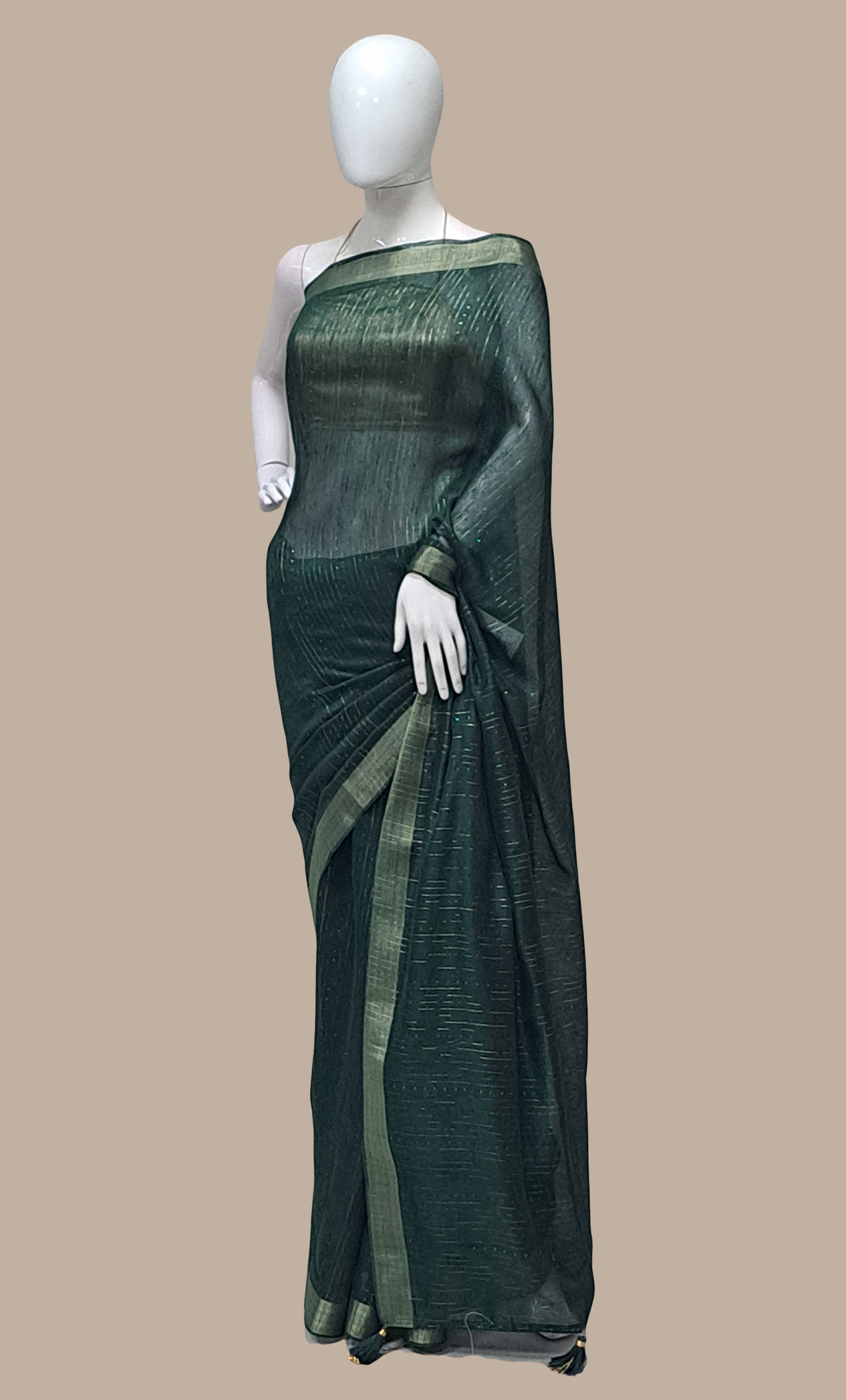 Bottle Green Cotton Embroidered Sari