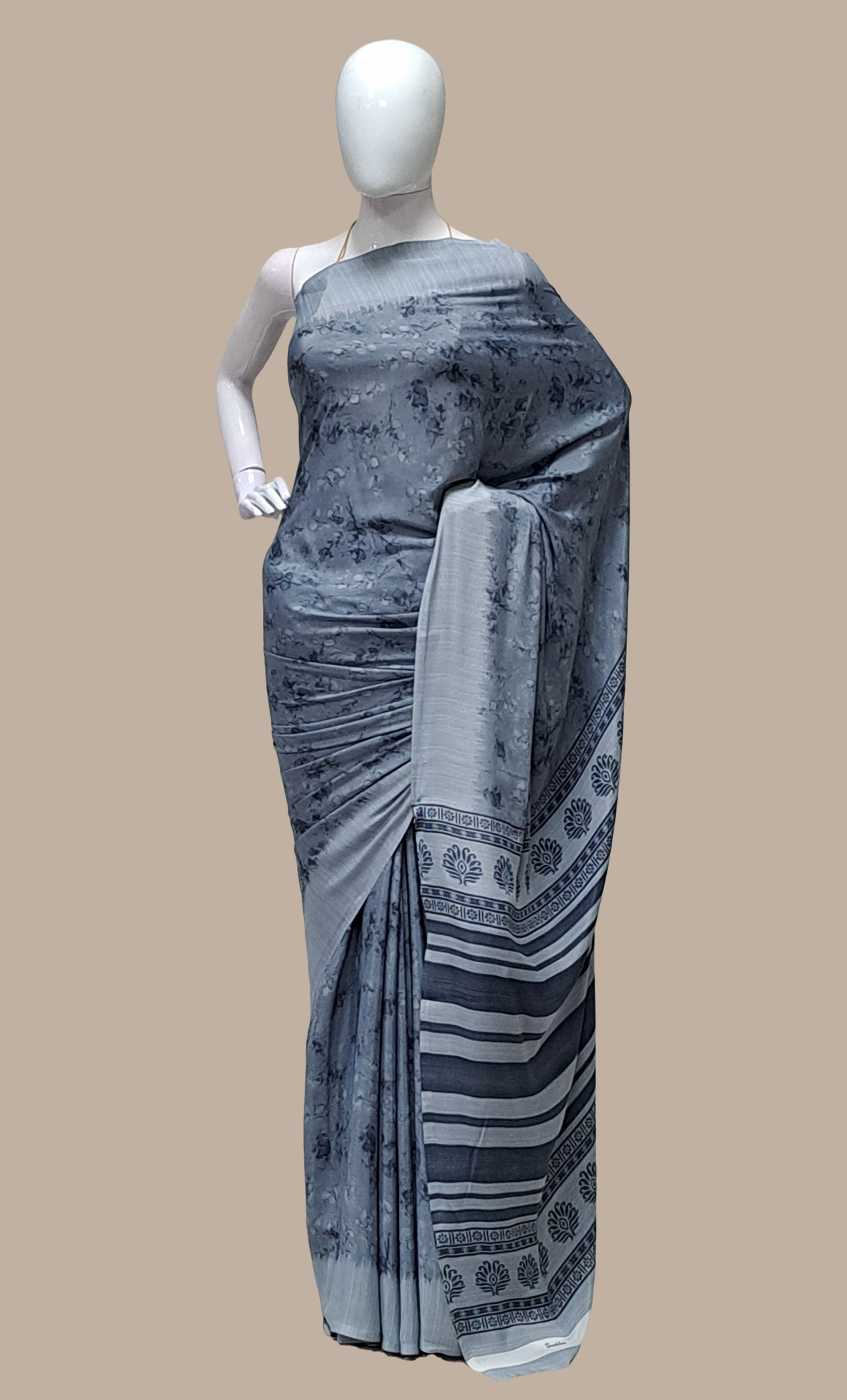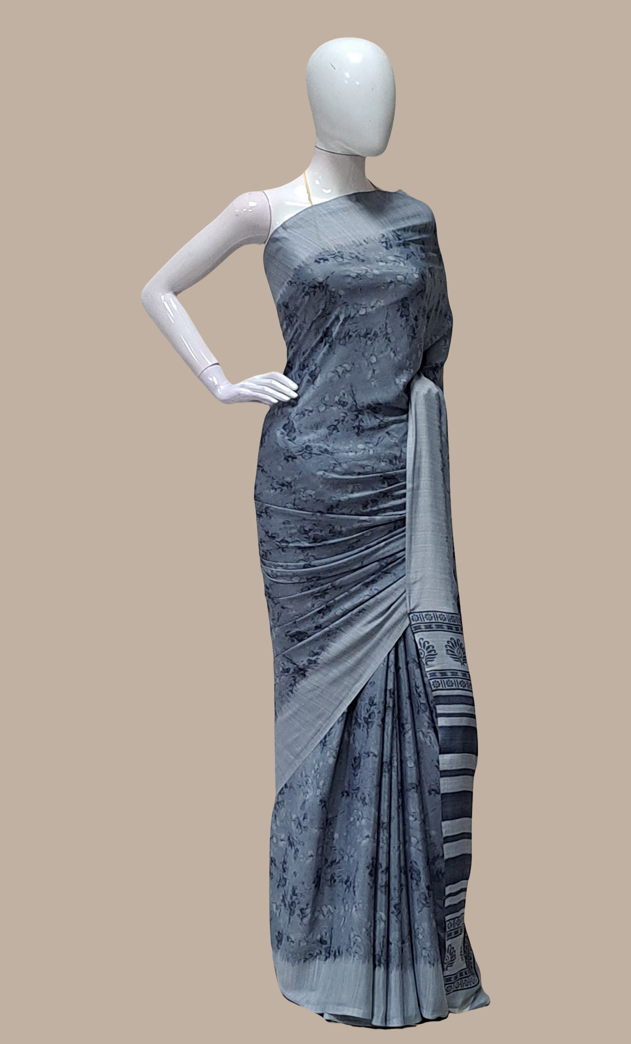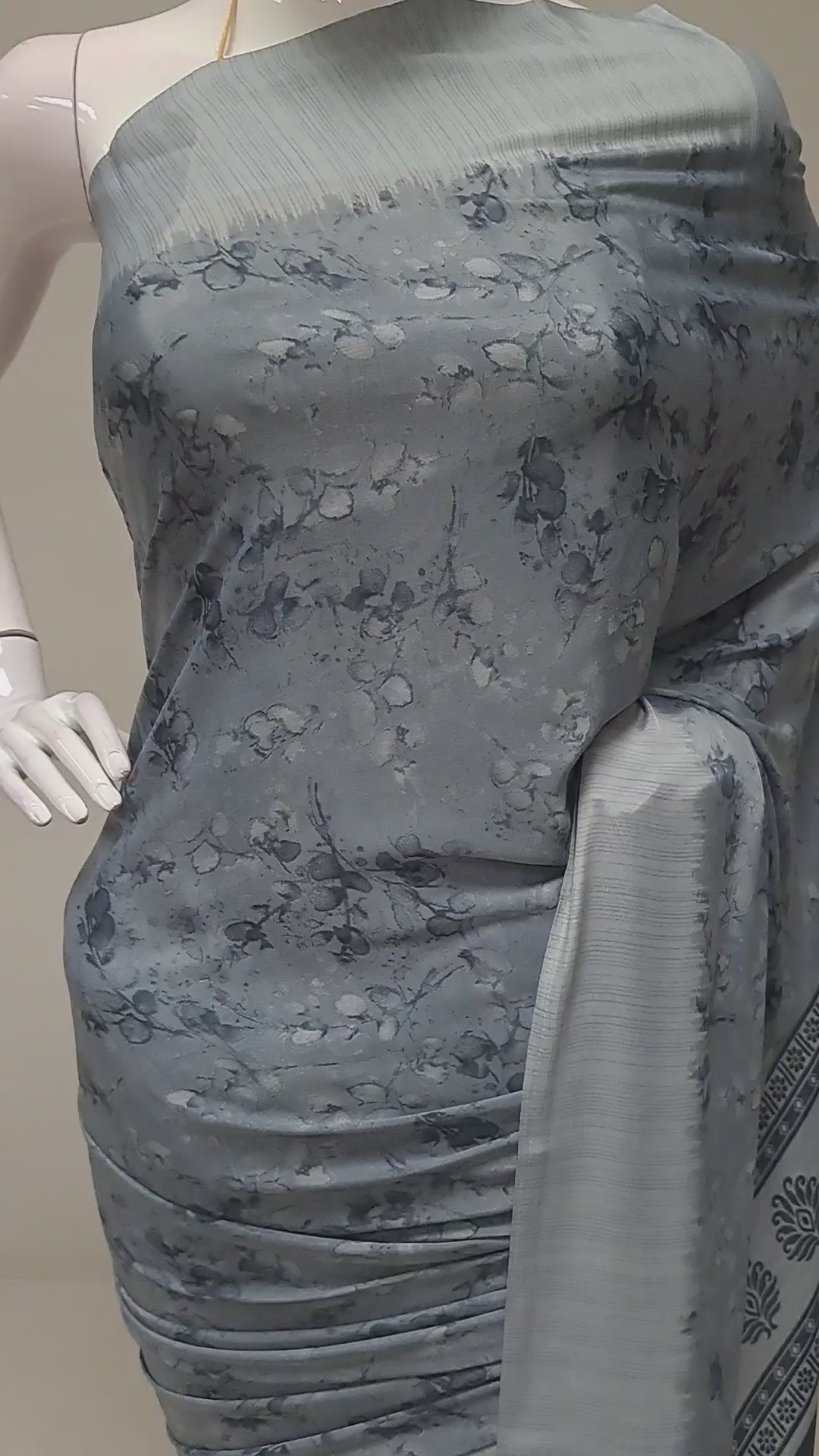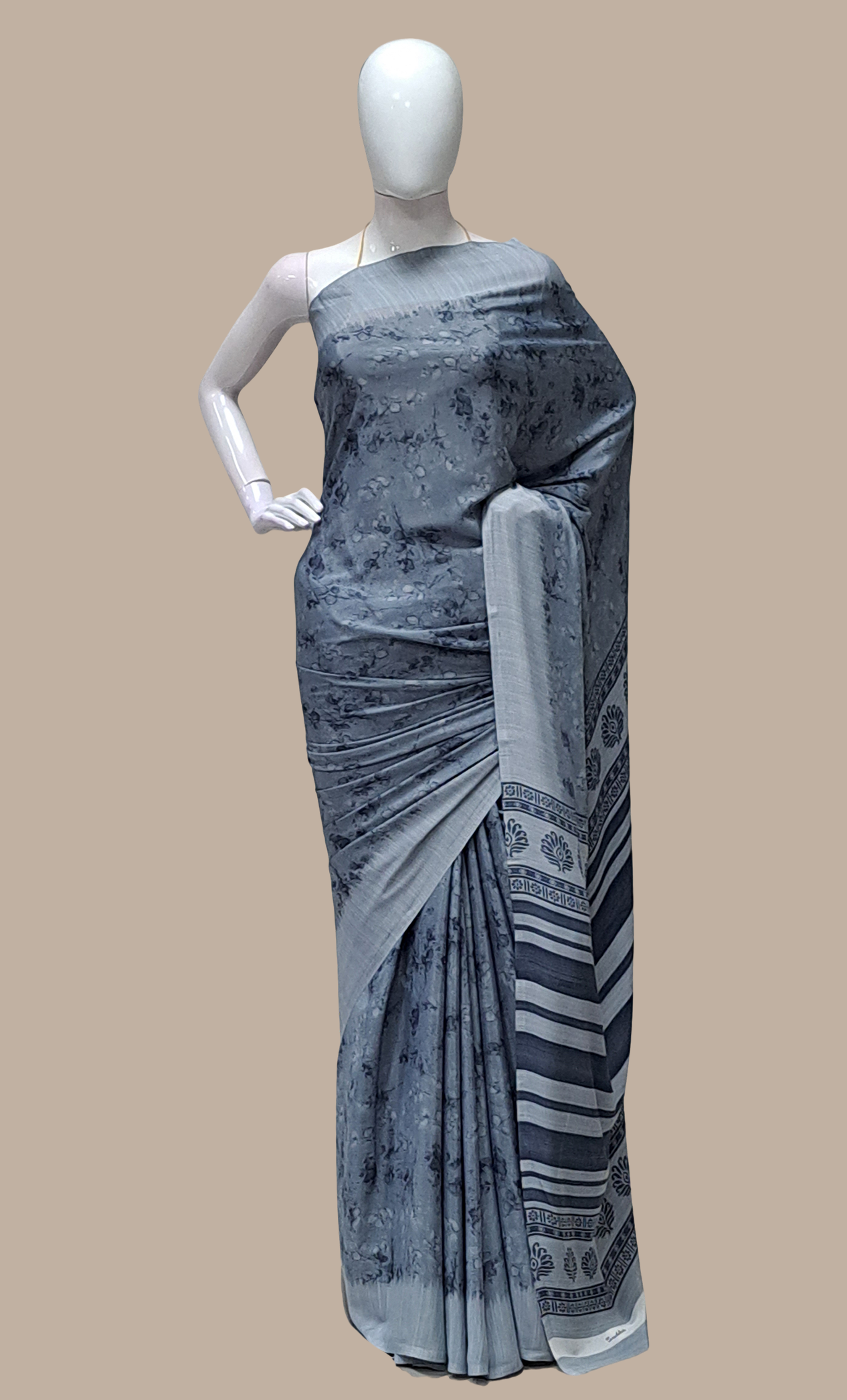 Deep Grey Printed Sari