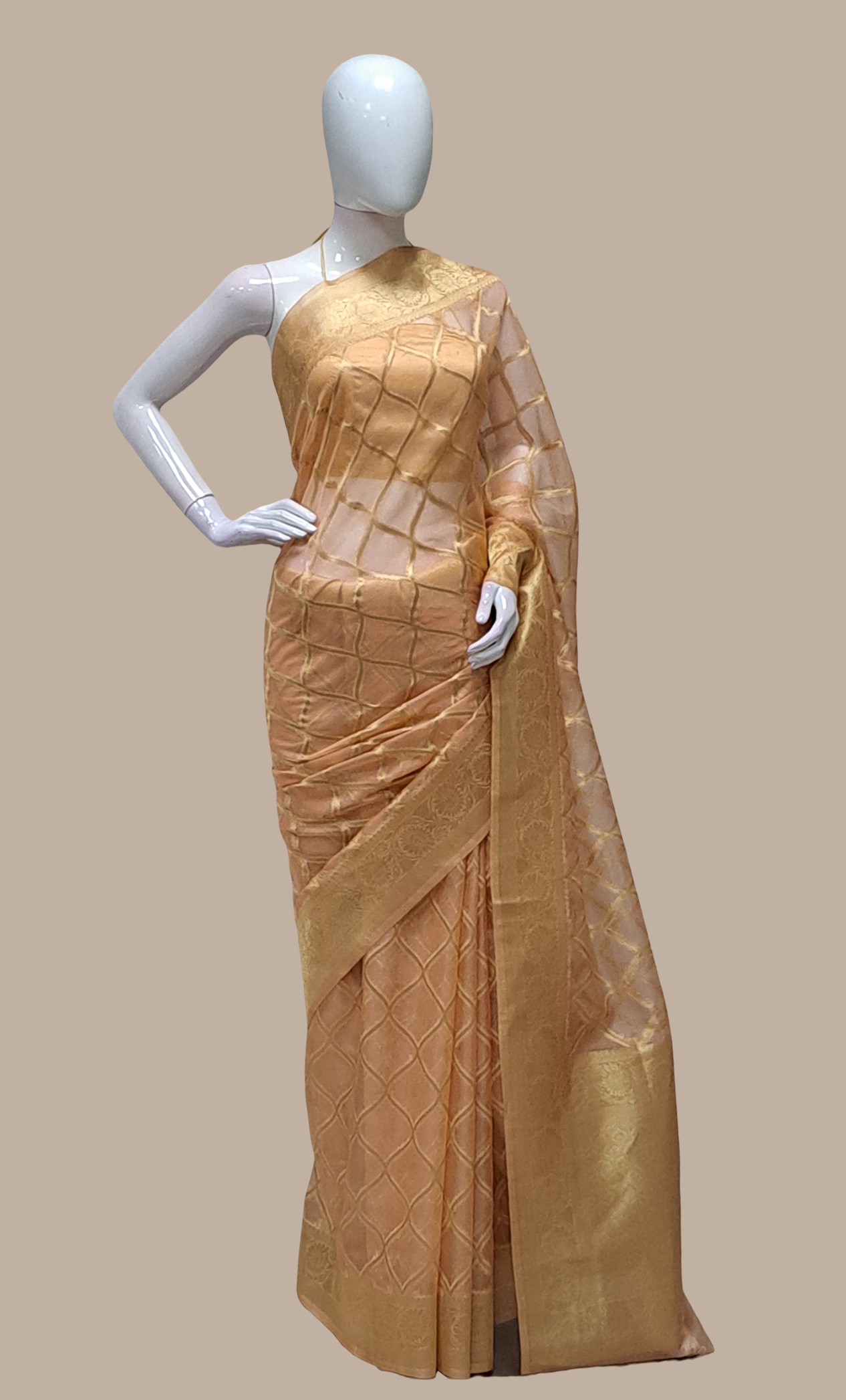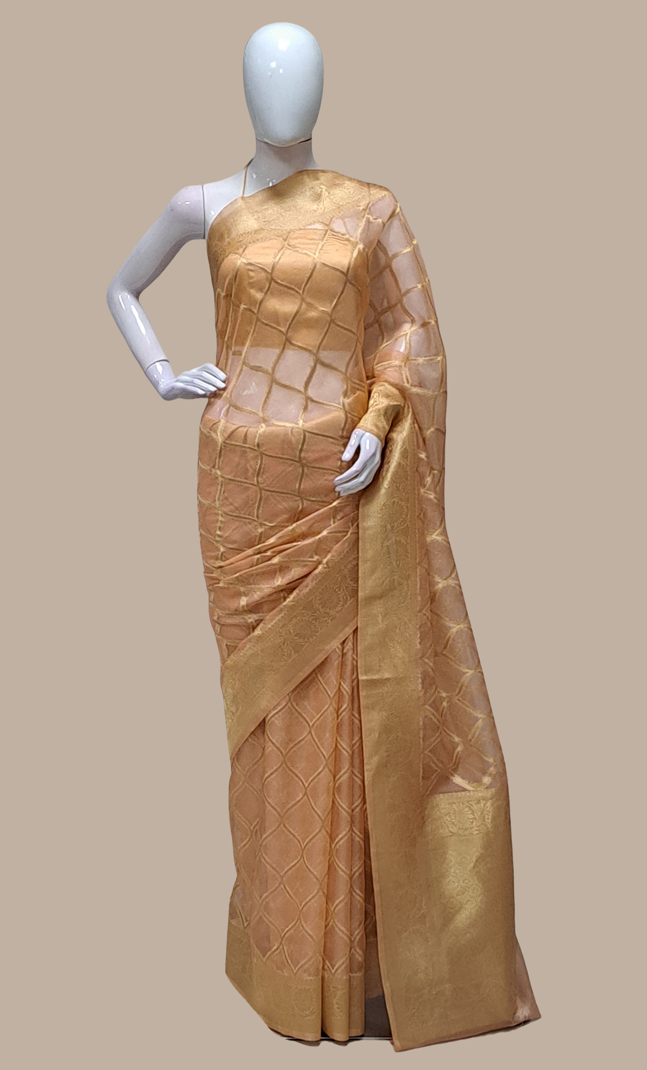 Peach Embroidered Sari