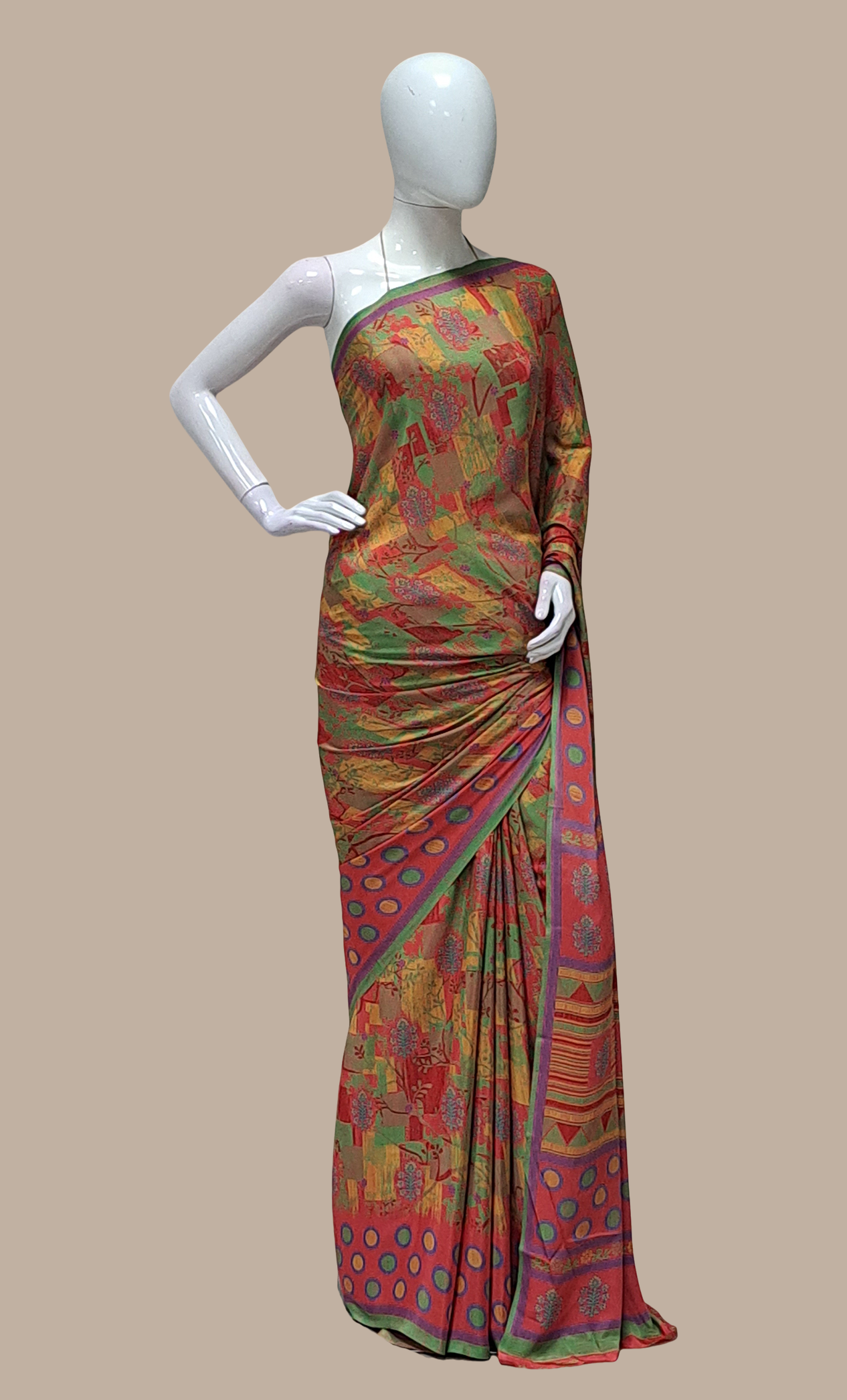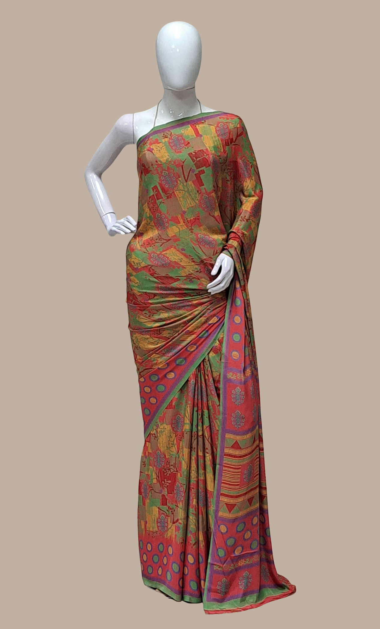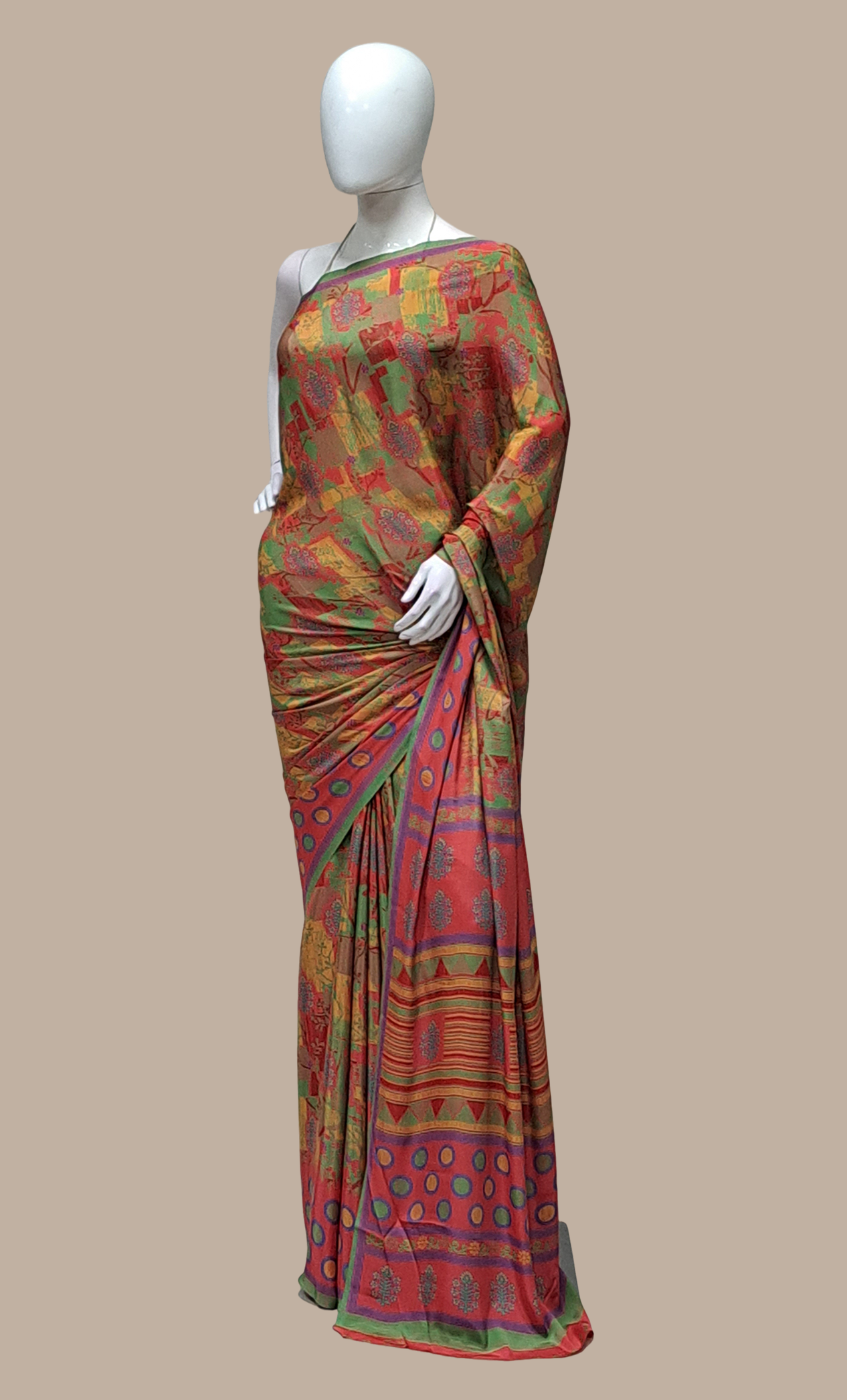 Red Printed Sari