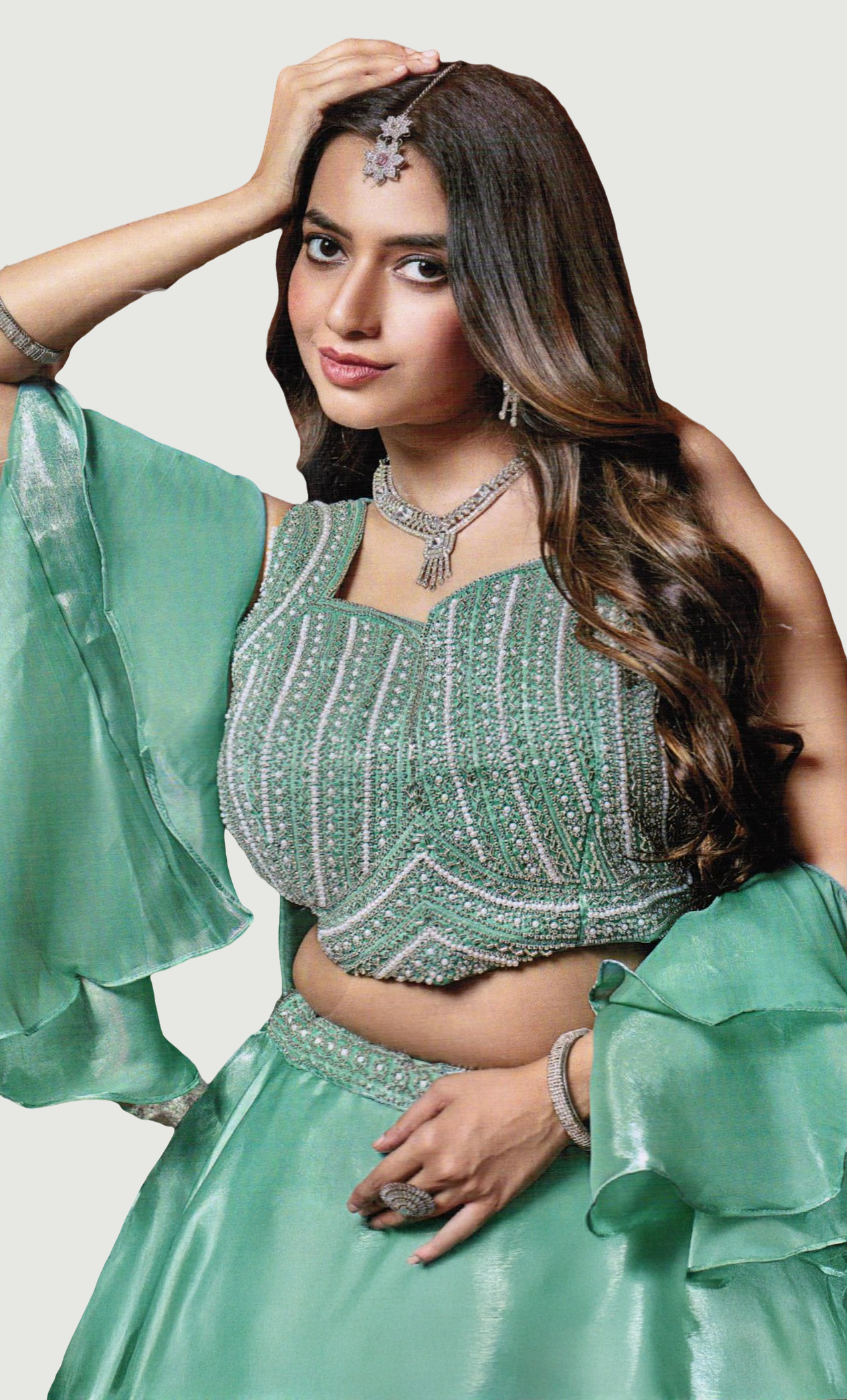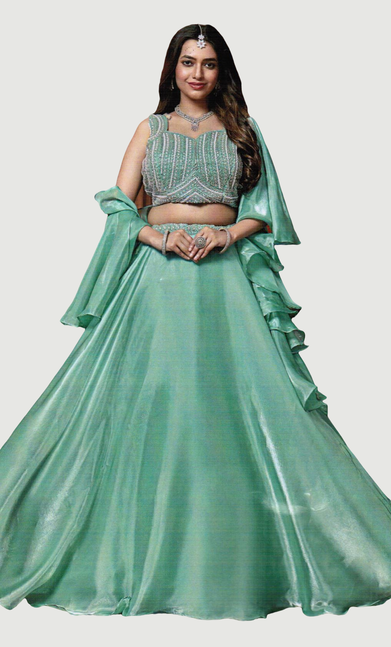 Sea Green Embroidered Chania Choli Set